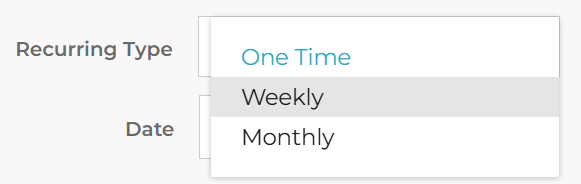 - Create recurring events with Weekly (daily or selected dates) and Monthly options