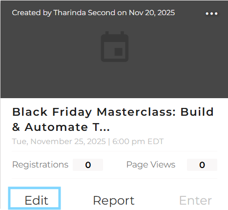 - You will see an event summary on this page. If not, go back to the event list, and click the Meatball icon in the event card (on the upper right)